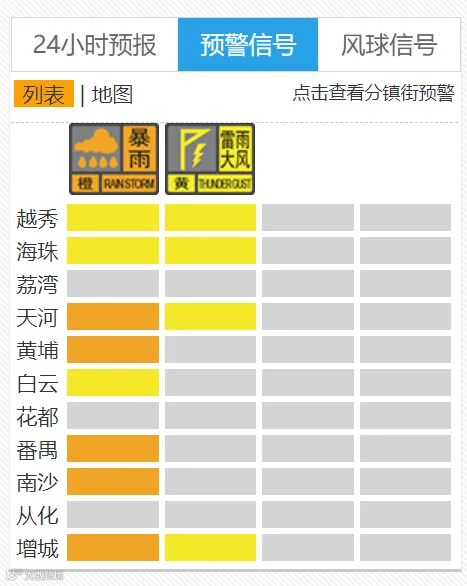 广州市达到启动气象灾害(暴雨)