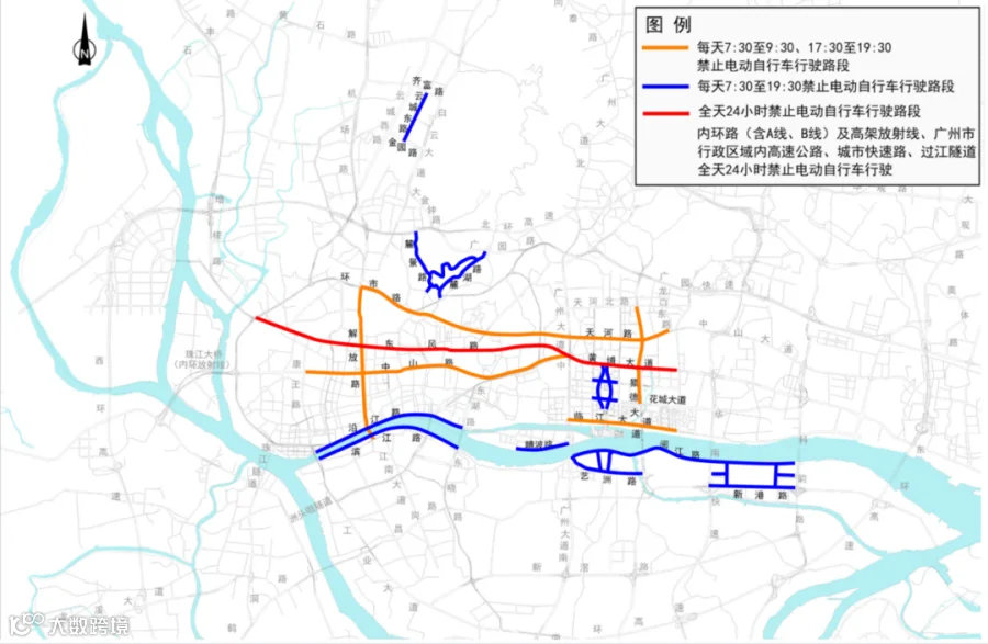 三是在公共交通较为发达的重要主干道实施早晚高峰限行,包括南北向的解放路、天河东路、猎德大道;东西向的天河路、环市路、中山路、临江大道等,希望通过高峰期分流电动自行车,保障主干道交通的正常运行,引导电动自行车短途出行。