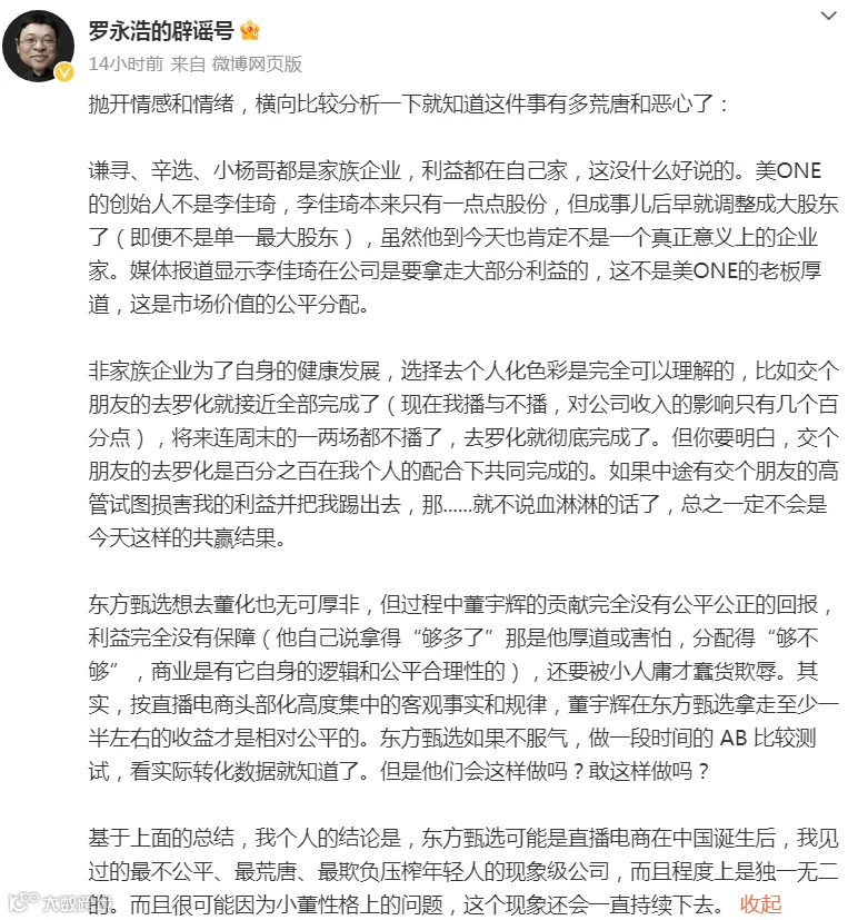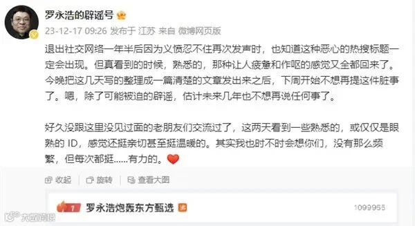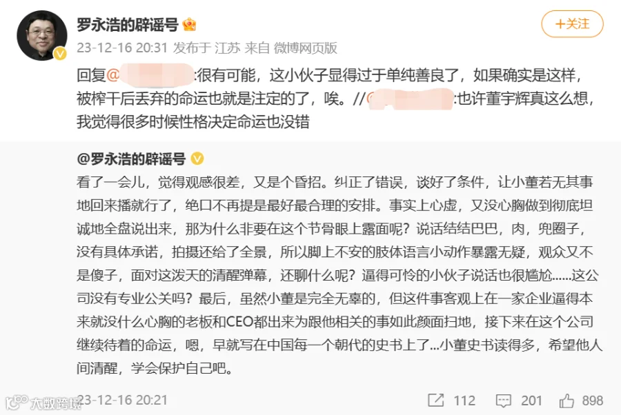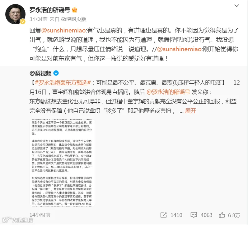 12月17日早,“罗永浩的辟谣号”多次转载网友评论。