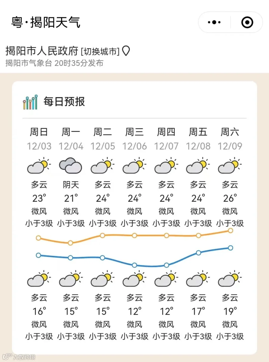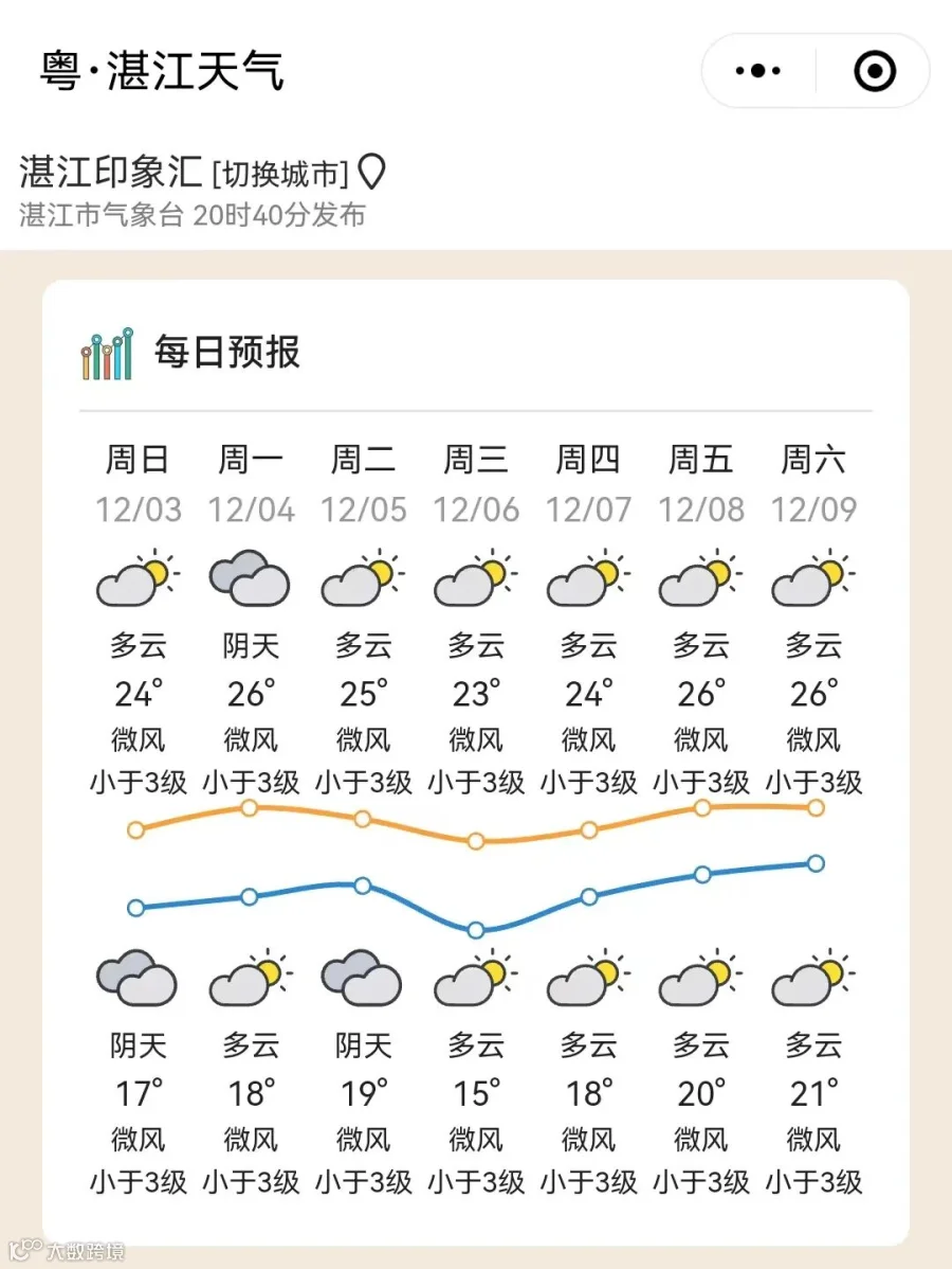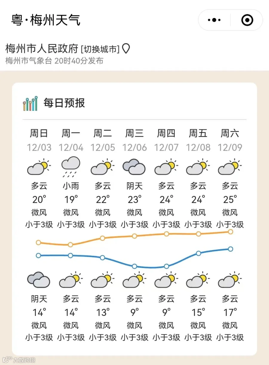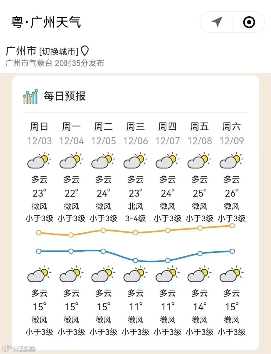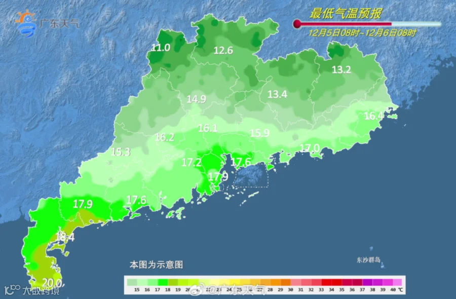 广东部分城市的天气预告↓