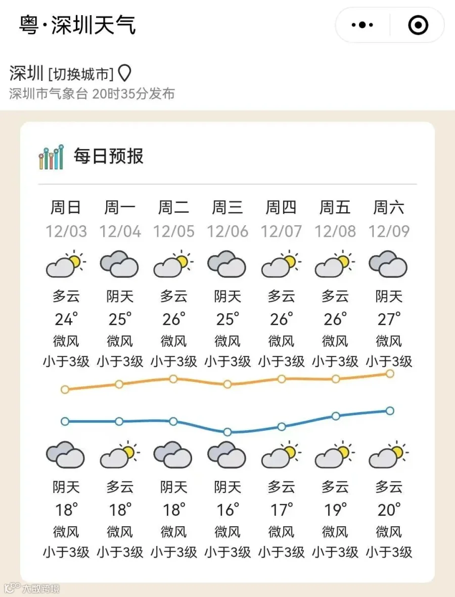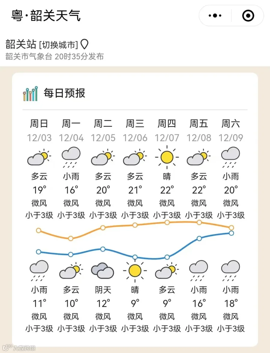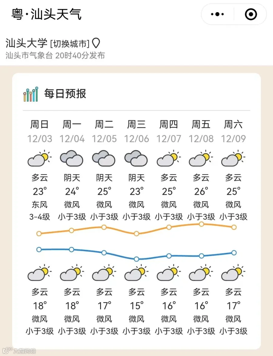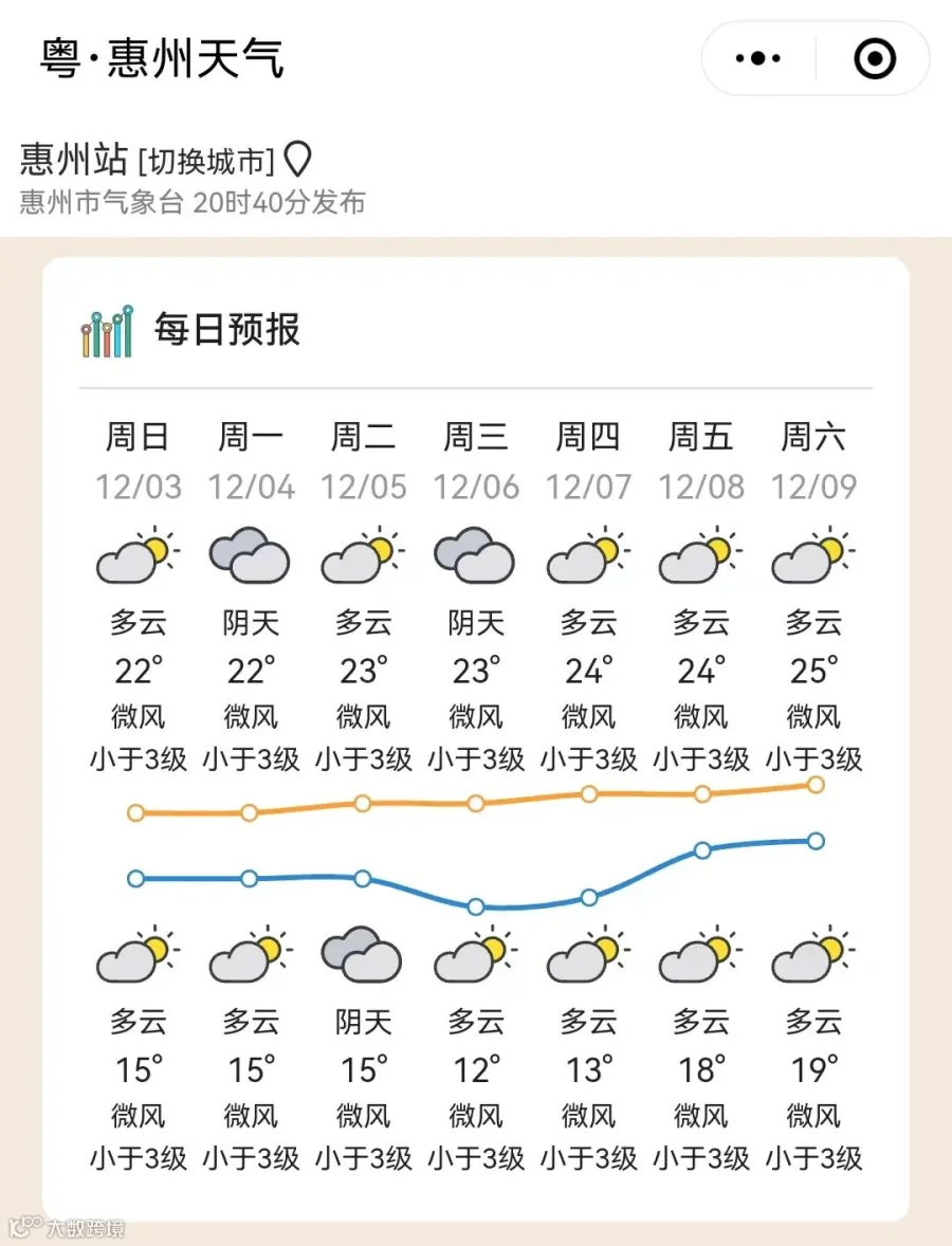 广东部分城市的天气预告↓