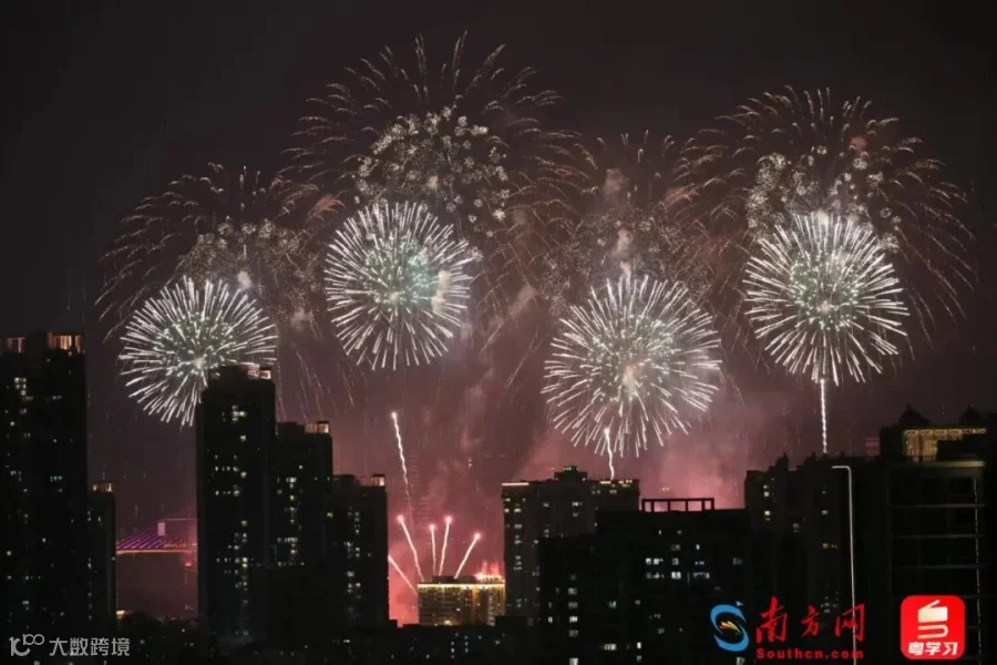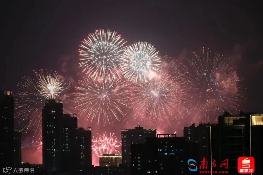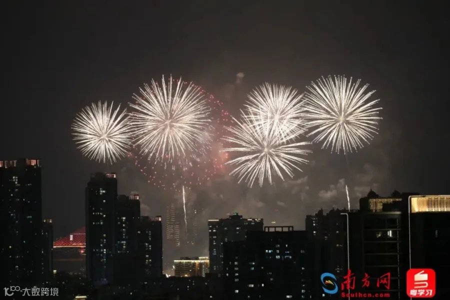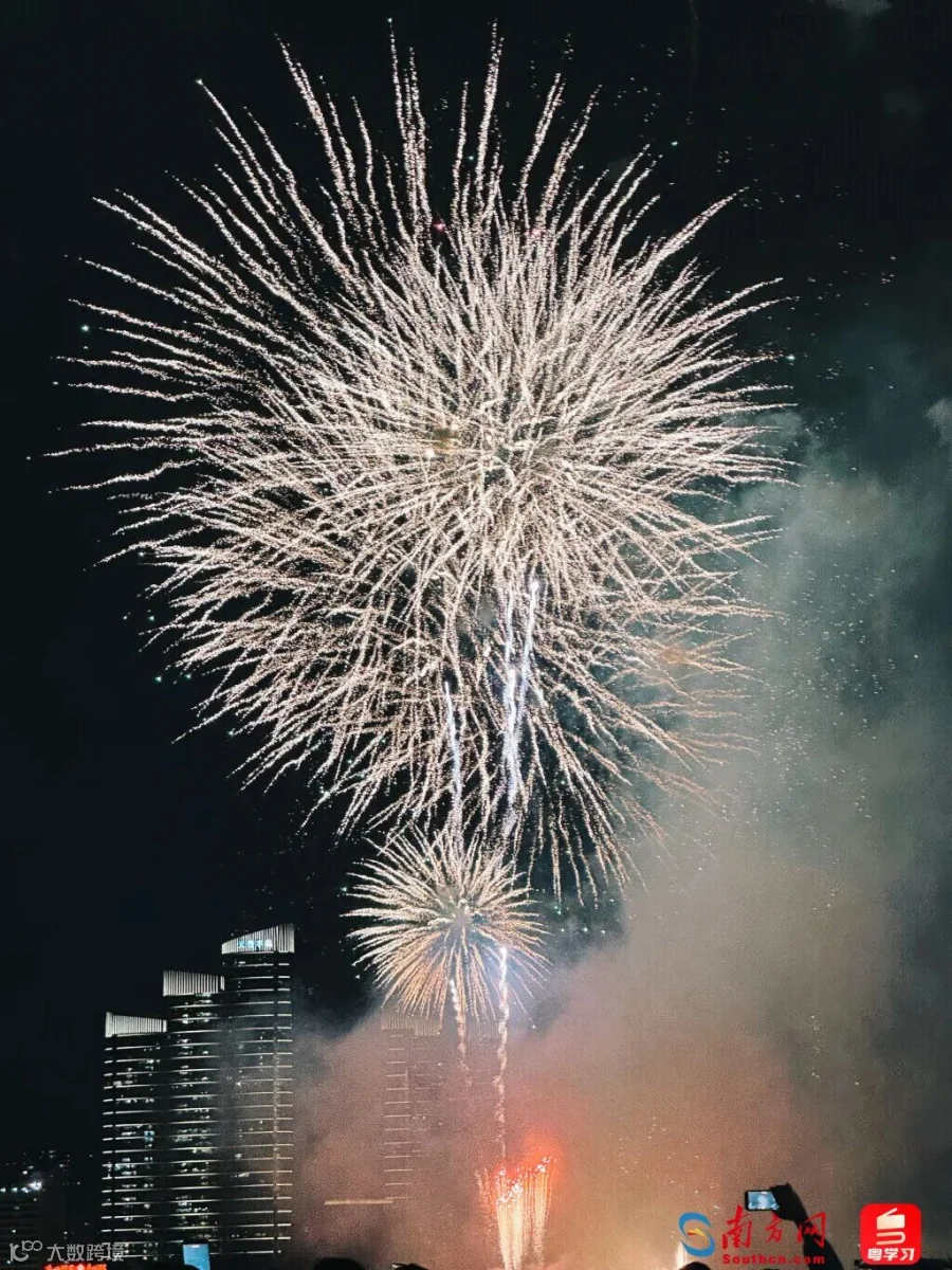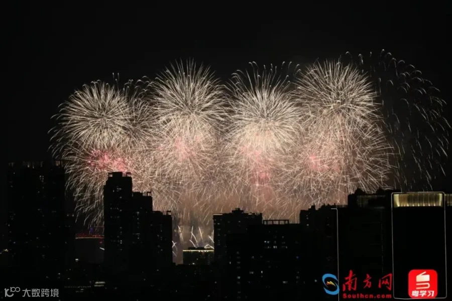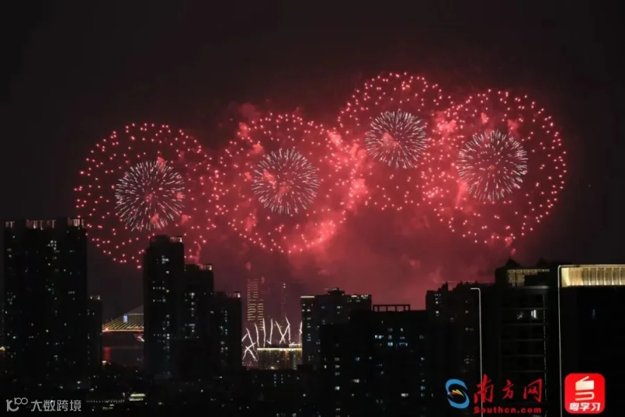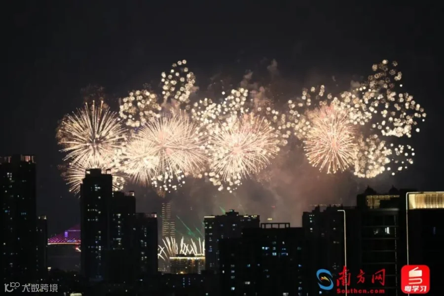 时长45分钟的烟花汇演中,“五谷丰登”等多组画面为国内首次呈现,鳌鱼、“大湾鸡”等十五运会出圈元素惊喜登场,这场融汇传统与现代、艺术与科技、人文与商业的视觉盛宴,向世界展示了千年商都广州的时代华彩。