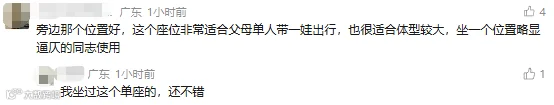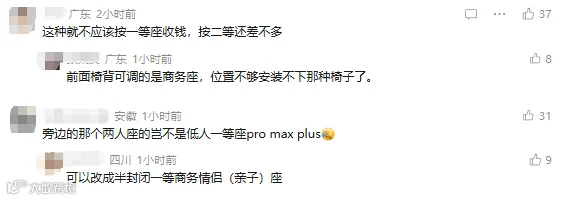 据悉,此前有网友在社交平台称,购买了高铁一等座车票后发现座位被安排到了商务舱车厢内,本来以为捡到便宜,结果发现座椅和商务舱内的其他座椅明显不同,有些尴尬。此外,实际乘坐感也很不好,不仅中间没有扶手,靠背也无法调节。