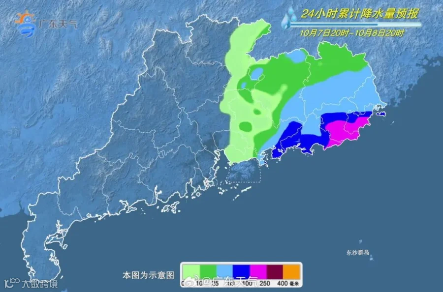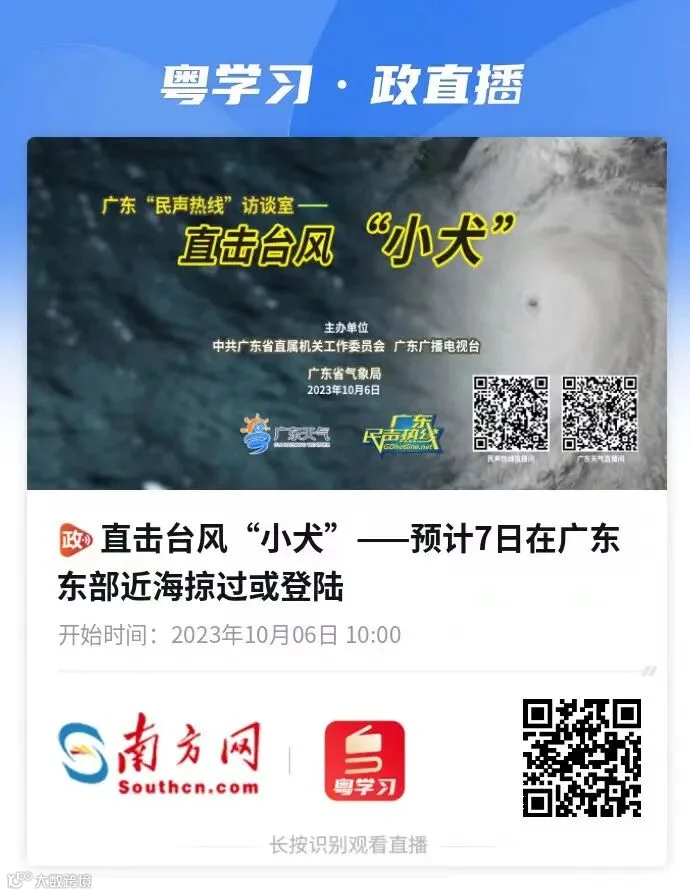 5日夜间-6日,粤东市县多云转大雨局部(大)暴雨,珠江三角洲南部市县和梅州、河源转雷阵雨局部暴雨;其余市县多云到晴,局部有(雷)阵雨;粤东沿海市县偏北风6级~8级,阵风9级。