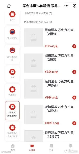 另外,记者注意到,在茅台冰淇淋小程序上,茅台冰淇淋体验店茅粤(店)已经上线了“茅小凌酒心巧克力礼盒”。该系列有经典酒心巧克力礼盒2颗装、6颗装、12颗装,每盒价格分别为35元、99元、169元;减糖酒心巧克力礼盒2颗装、6颗装、12颗装,每盒价格分别为39元、109元、179元。