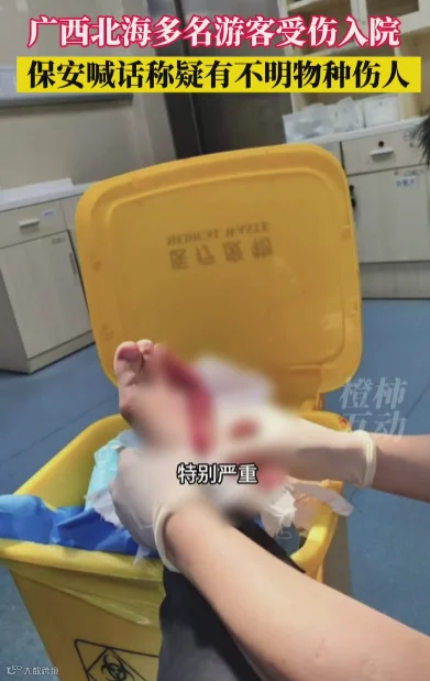 8月17日上午,有媒体记者从北海市人民医院(银滩院区)急诊科了解到,昨晚有8到10位病人因被海中不明生物咬伤,在该院接受治疗。工作人员表示,被咬的病患在门诊进行消毒缝合等治疗后已出院。