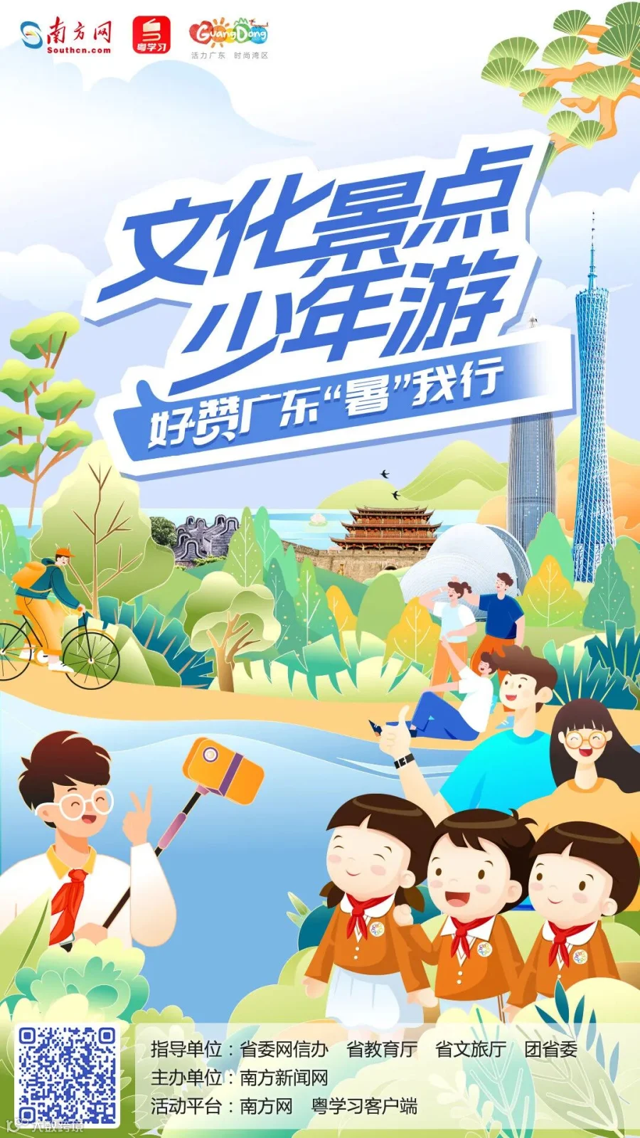 7月,在广大中小学生进入暑假之际,粤学习客户端举办文化景点少年游 好赞广东“暑”我行网络活动。活动将引导青少年到游径地标游览参观,在亲身参与的过程中感悟广东文化魅力、体会中国文化力量。