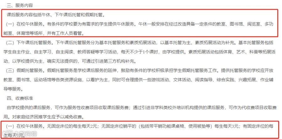 在校午休服务“无固定床位”的收费标准为“每生每天2元”;