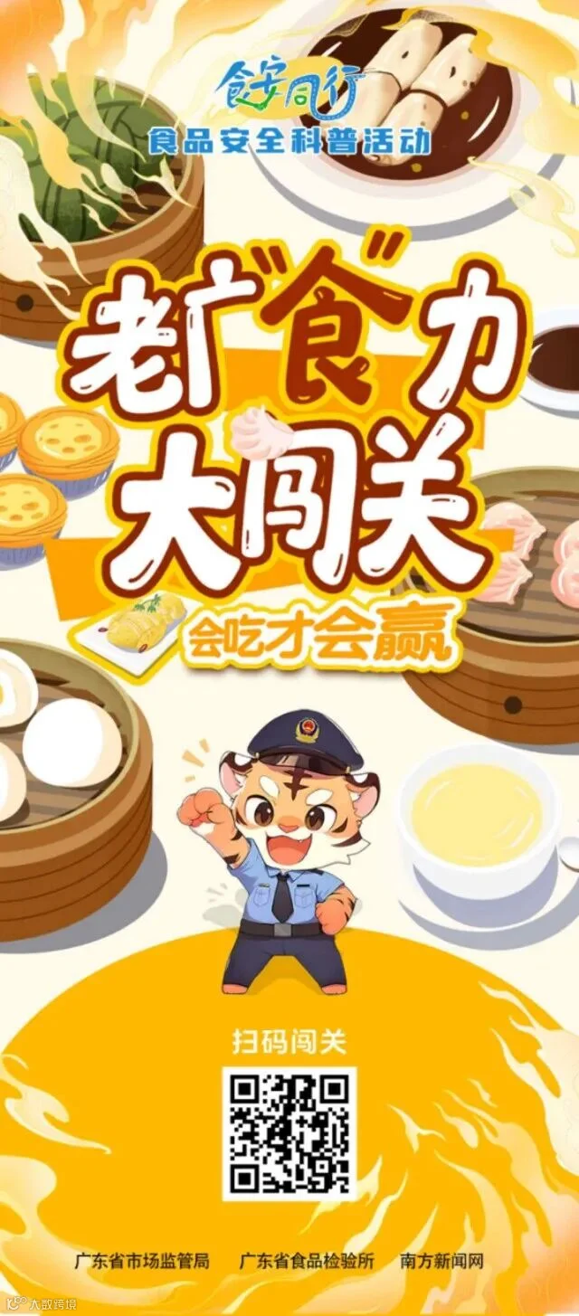 正值2025年全国食品安全宣传周和首届“全国科普月”,在广东省市场监督管理局的指导下,南方新闻网联合广东省食品检验所出品《老广“食”力大闯关》H5小游戏,点击图片或扫描下方二维码,等你凭“食”力闯关!