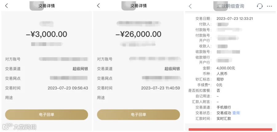 3000元、4000元和26000元