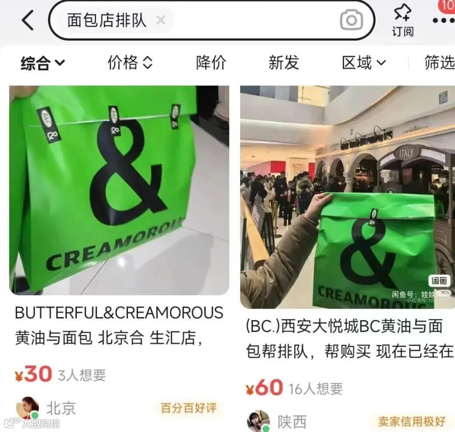 社交媒体上,“代买一个面包加价十几元”“排队超5小时只为抢购面包”……面对“面包刺客”,年轻人仍在抢着买单。据记者观察,在二手平台上,网红面包“黄牛”排队代购已成产业链,有人出价30—60元不等。
