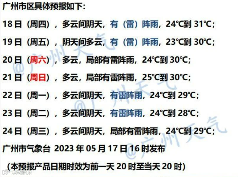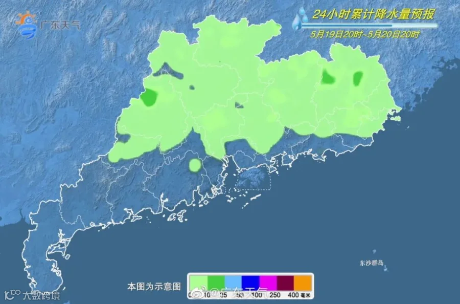 20日,粤北和珠江三角洲北部市县阴天间多云有(雷)阵雨局部大雨,其余市县多云间阴天,有分散(雷)阵雨。最高气温:粤西、珠三角西部市县30℃~34℃,其余市县26℃~29℃。