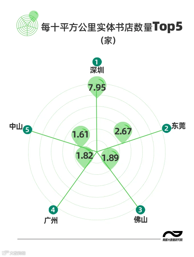 被誉为“书店之都”的深圳有着全省最多的实体书店,每十平方公里的实体书店数量接近8家,遥遥领先其他地市。