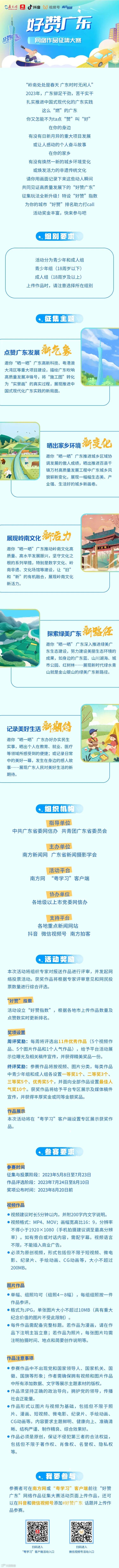 据悉,征集大赛是“好赞广东”网络品牌的首个线上活动。未来,“好赞广东”还将举办广东文化景点少年游、正能量进群入圈等一系列活动,形式多样、奖励丰富,敬请期待!