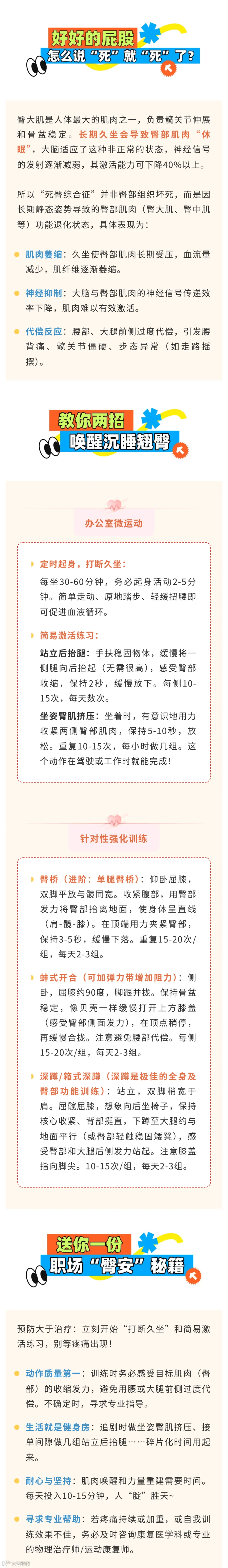 医生诊断为:“死臀综合征”(Gluteal Amnesia)!长期久坐导致臀部肌肉彻底“躺平摆烂”,功能严重退化。