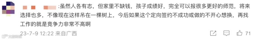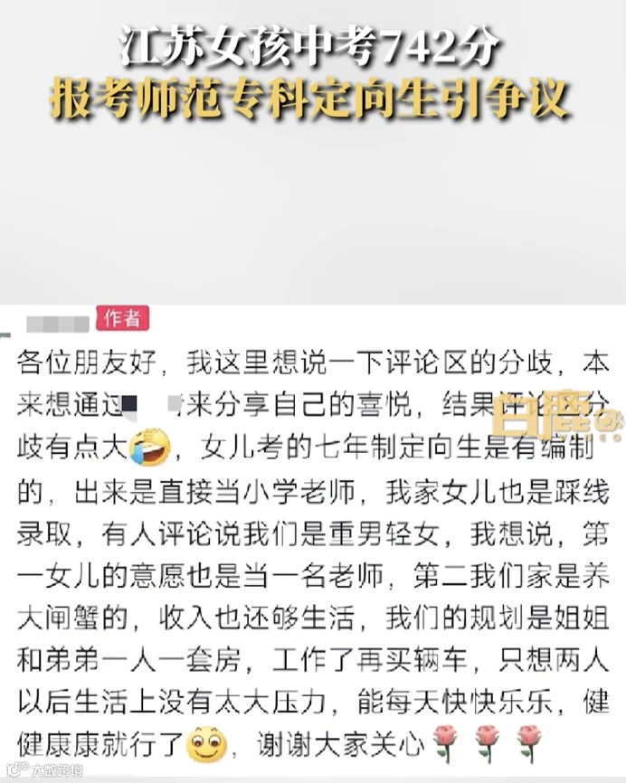 女孩中考742分报考师范专科,网友吵翻