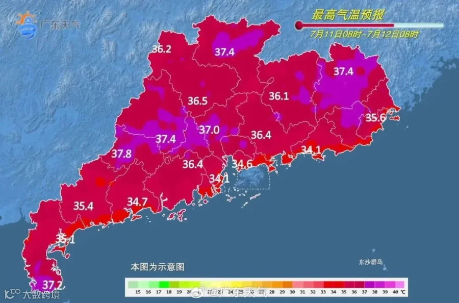 最高气温:除雷州半岛外的南部沿海市县31℃~33℃,其余市县34℃~36℃,部分市县37℃左右。