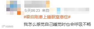 睡眠窒息症就是睡眠呼吸暂停综合征(OSA),是指在睡眠过程中气道受阻,呼吸暂停和低通气频繁发生的现象。其临床表现就像霍启刚一样会出现夜间打鼾,频繁惊醒,睡眠质量下降,白天困倦,严重的还会出现白天嗜睡、记忆力下降、情绪改变等。