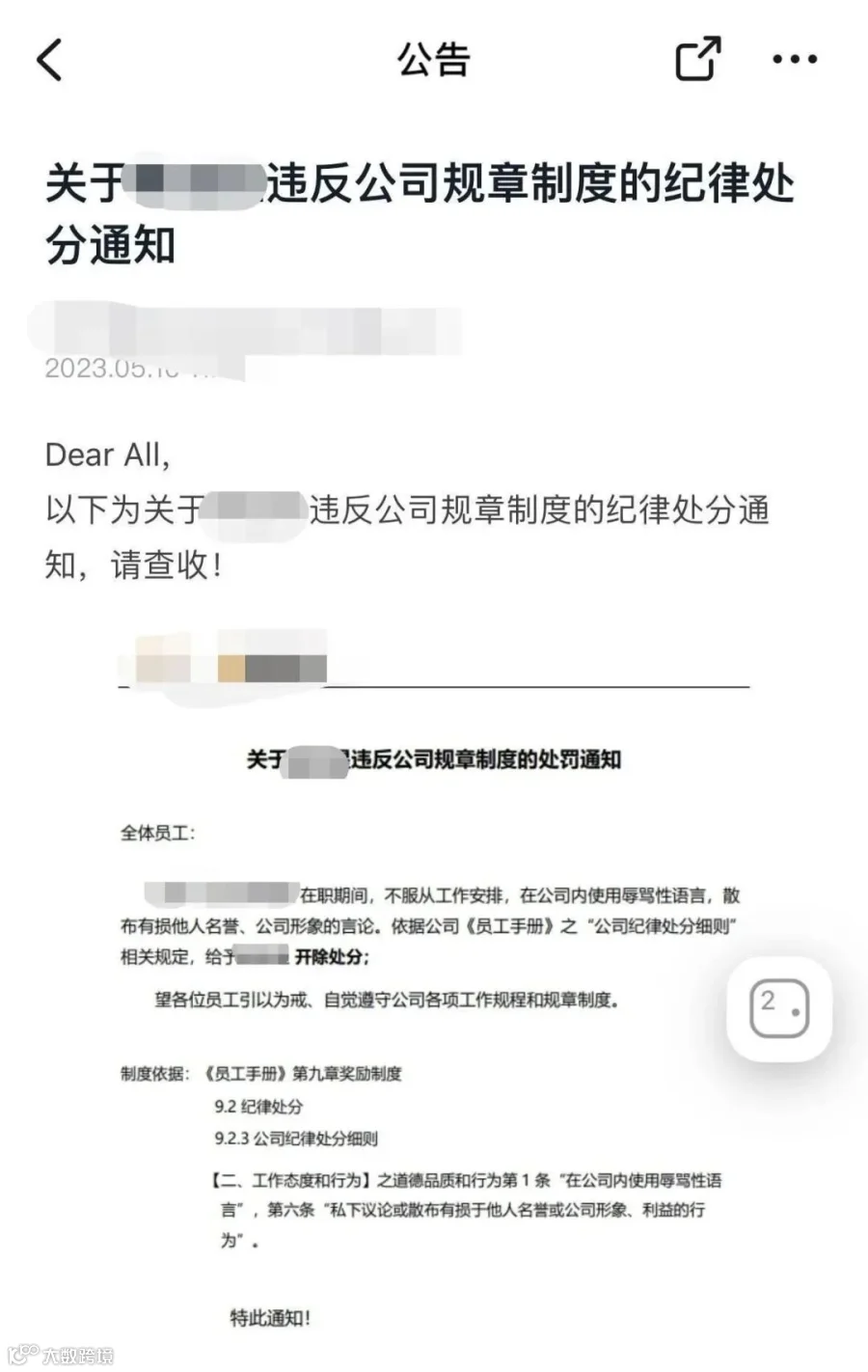 该公司通报批评此员工