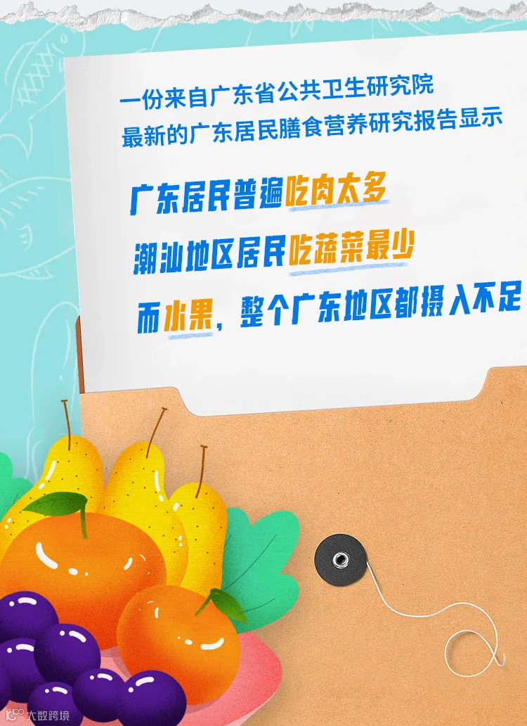 根据调查,广东居民膳食结构正在发生变化,植物性食物如粮谷类、蔬菜摄入下降,水果摄入不足,而动物性食物如畜、禽、鱼、蛋则越来越多,正在向高蛋白、高脂肪、高糖、低膳食纤维的方向迈进。
