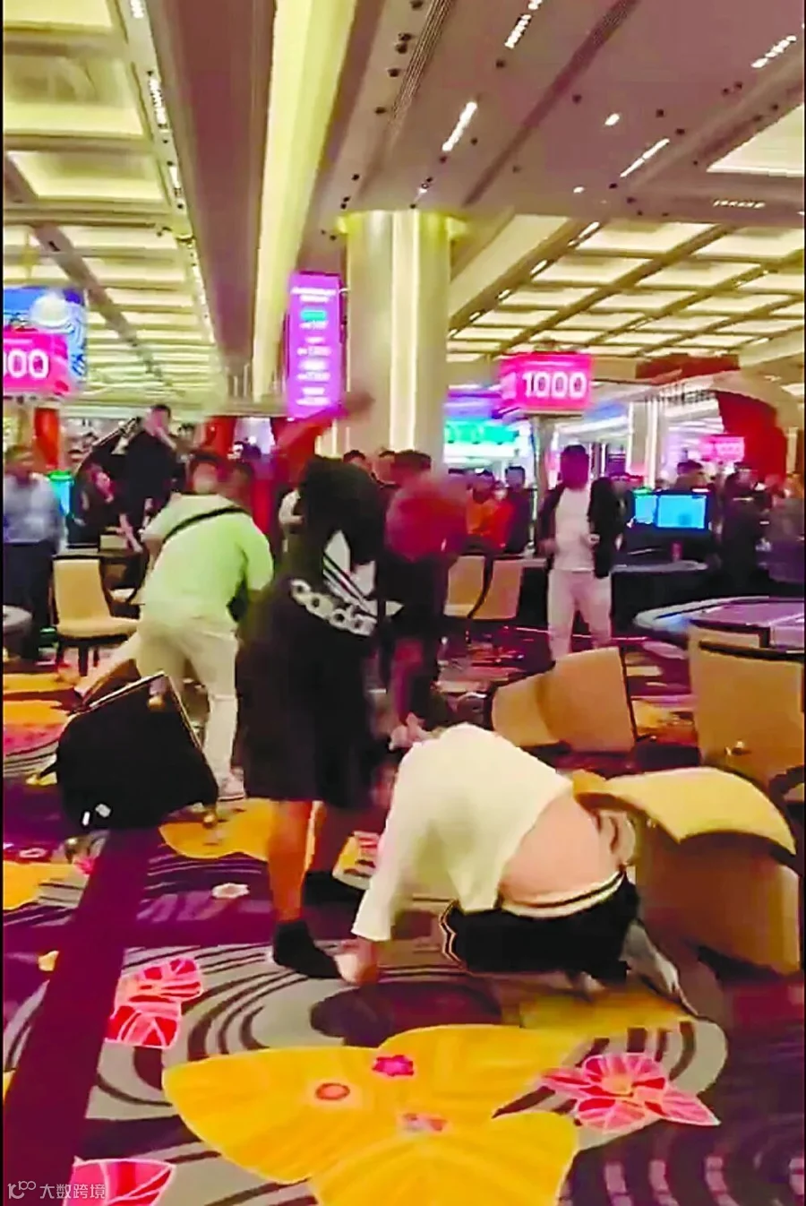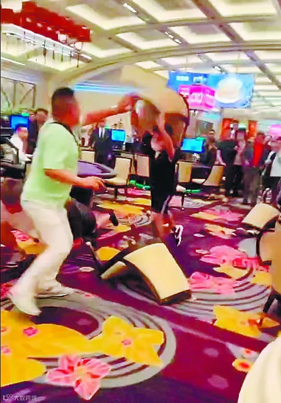 昨日网传多段路氹某娱乐场上演“全武行”影片。片段所见,起初一名黑衣男子在赌场内与一名白衣男子缠斗,不断殴打白衣男子头部。未几双方人马加入混战,有人举起椅子掷向对方。网传双方打斗原因是有人在每场赌局均落注“对家”,赢钱后更出言嘲讽致双方口角,继而动武。