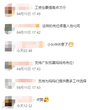广东省人社厅介绍,“妈妈岗”是落实国家积极生育政策,满足妇女就业、满足企业等用人单位用工需求,由政府鼓励引导、企业等用工主体开发设置的就业岗位,主要用于吸纳法定劳动年龄内对12周岁以下儿童负有抚养义务的妇女就业,工作时间、管理模式相对灵活、方便兼顾工作和育儿。