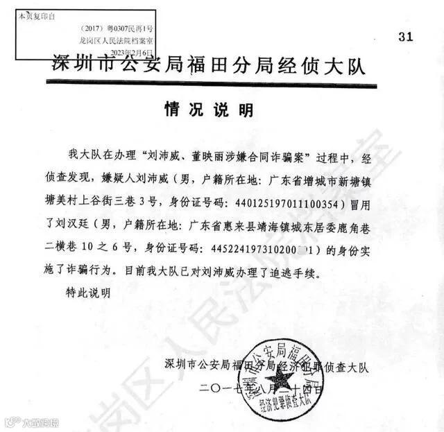 深圳警方的调查结果显示,假冒刘汉廷的人原名刘沛威,在冒名顶替后,他以“刘汉廷”为法人注册了一间民间借贷公司,并在深圳各个银行开信用卡套现。直到刘汉廷报警时,刘沛威已经因为涉嫌合同诈骗罪被列为网上追逃对象。
