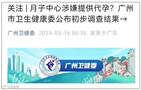 今天(3月16日)凌晨,广州卫健委公布关于“月子中心涉嫌提供代孕”的初步调查结果。