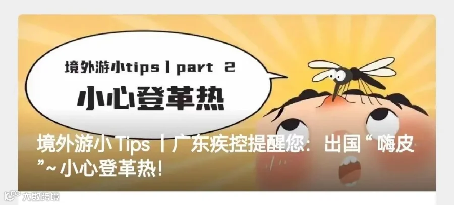 前往东南亚等热带和亚热带国家,及时查看旅游部门、出入境检验检疫部门的旅游提醒,提前了解当地登革热病例情况及疫情风险,学习相关预防知识,做好防蚊灭蚊的防护准备。