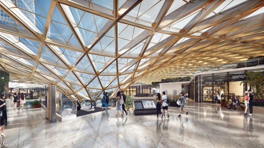 该项目方案融合进金融城 “方城、曲苑、翠岛、玉带”空间格局,以晶莹的玉帛造型,诠释鱼与玉的灵动关系,取名“锦鲤馔玉”,传承岭南文化精粹。