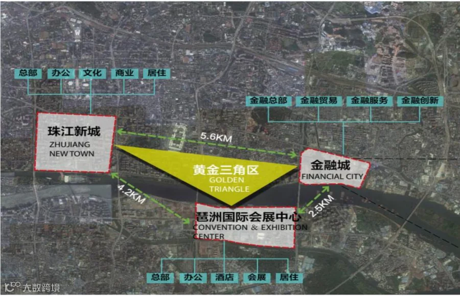 广州国际金融城是天河中央商务区的一部分,作为国际化综合金融中心,数字经济融合创新引领区和珠江滨水活力典范区,由4个区域组成,分