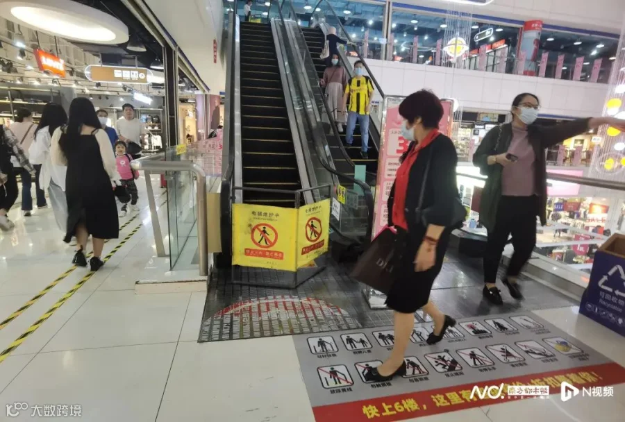与室外熙熙攘攘的北京路步行街相比,天河城百货内则显得略为冷清。在商场逛街购物的人们多是中年人和老年人,鲜有年轻人前来光顾。