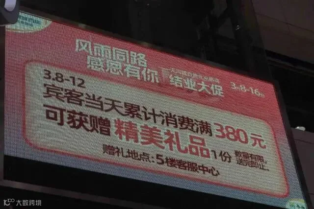 3月8日至12日,顾客消费满380元后可获得礼品。