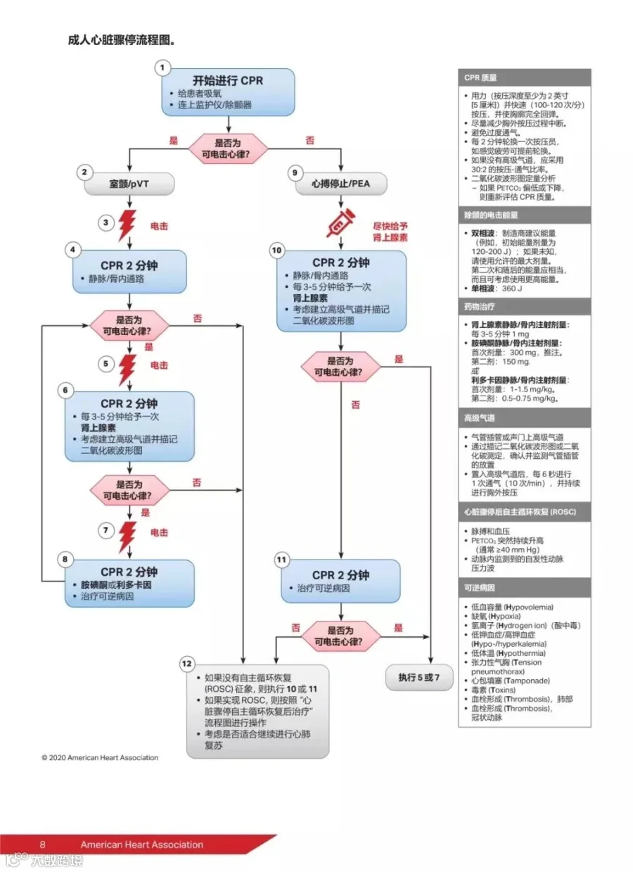 而对旁观者来说,如果面对的是已经因心梗而心脏骤停的人,争分夺秒是最重要的。心脏骤停4分钟以上便会造成不可逆的脑损伤,如果你掌握了心肺复苏术(CPR)并立即施救,病人生还概率会大大提高。如果你没有经过CPR训练,不要浪费时间试图人工呼吸,只做单纯的胸外按压,持续快速有力地按压病人胸部,直到医务人员到达。