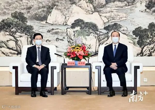 2月23日上午,省委书记黄坤明,省委副书记、省长王伟中在广州会见了来粤访问的香港特别行政区行政长官李家超一行,双方就深化粤港务实合作、推进粤港澳大湾区建设进行深入交流。