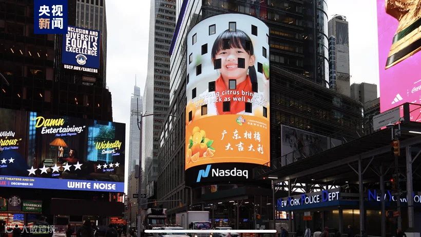 11月底,广东柑橘集体亮相纳斯达克大屏,闪耀美国时代广场。广东特色优势农业品牌宣传推介暨品牌运营项目正式开启国际化之旅。