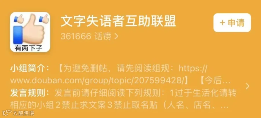 豆瓣@文字失语者互助联盟已经有30w+小伙伴。
