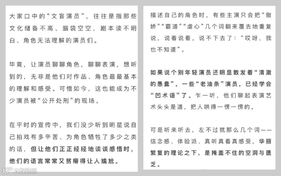 网络持续发酵下,央视网在微信公众号发文:绝望的“文盲”,能演好戏吗?