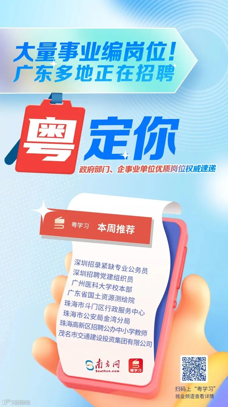 刚刚开春,广东不少单位发布了人才招聘公告,小编特对热门招聘信息进行梳理,涵盖广州、深圳、珠海、茂名等多个地市。一年之计在于春,心动不如行动,赶紧投简历!