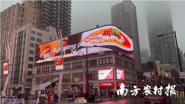 广东预制菜点亮加拿大多伦多央街屋顶大屏