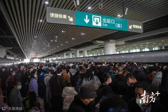 春运返程客流到达高峰期间,广州南站在站台、出站口等关键处所加派工作人员、青年志愿者加强宣传组织,引导旅客有序排队,快速疏散旅客出站。根据列车开行及客流情况,广州南站与地方管委会等部门积极协调延长地铁、公交、出租车等周边公共交通服务时间,实现客在返程高峰出行的“零距离”接驳。