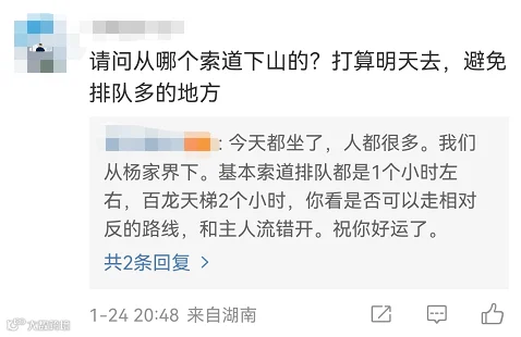 1月25日,张家界国家森林公园回应,1月24日景区接待人数超过6万,创单日接待人数历史新高。