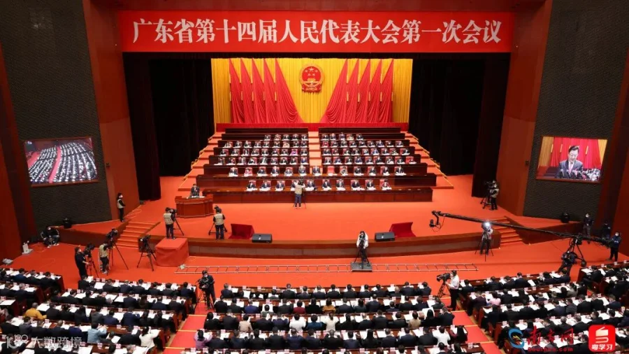 2023年1月12日上午,广东省第十四届人民代表大会第一次会议在广州白云国际会议中心世纪大会堂开幕。