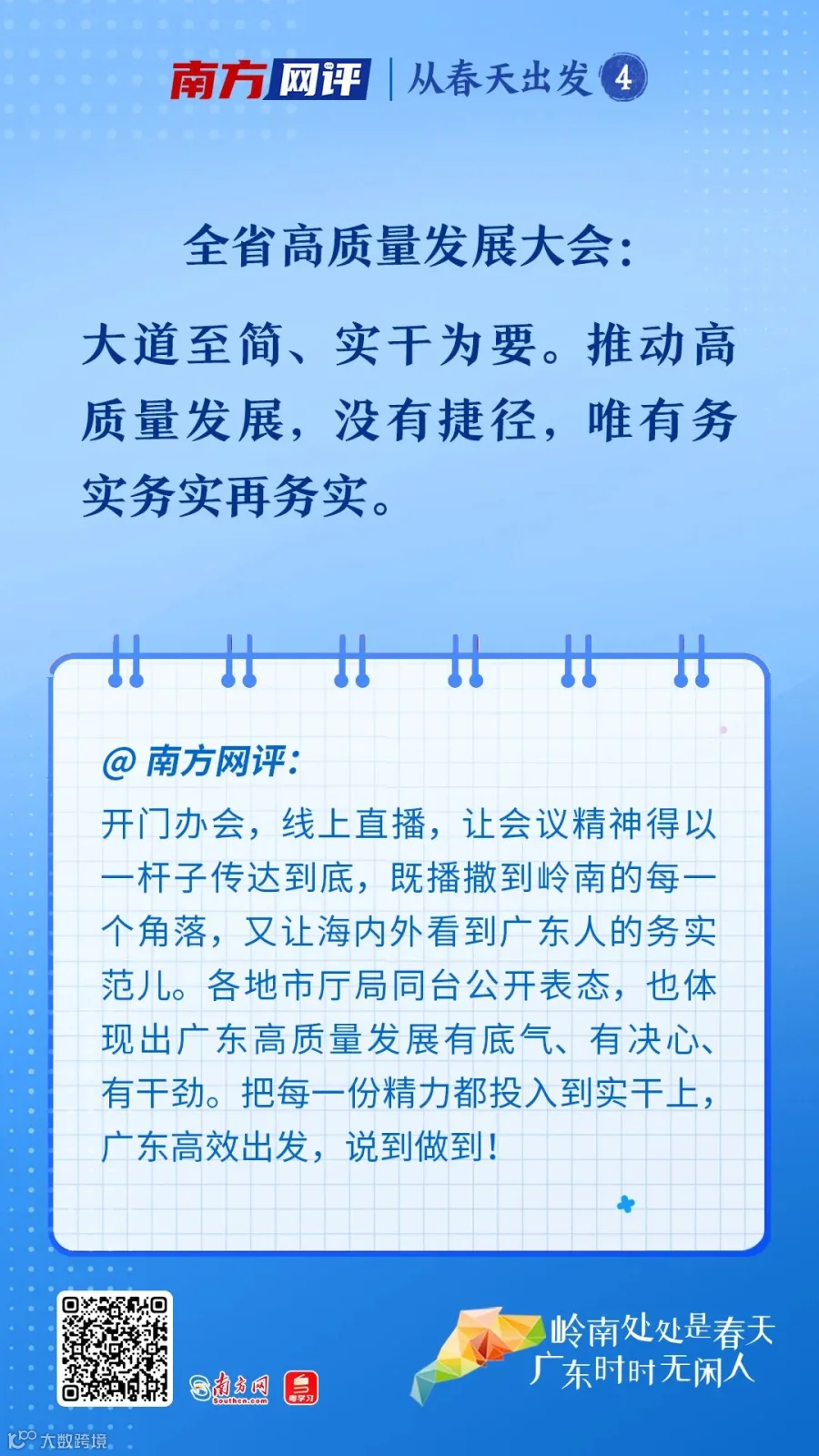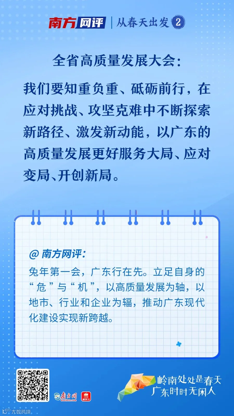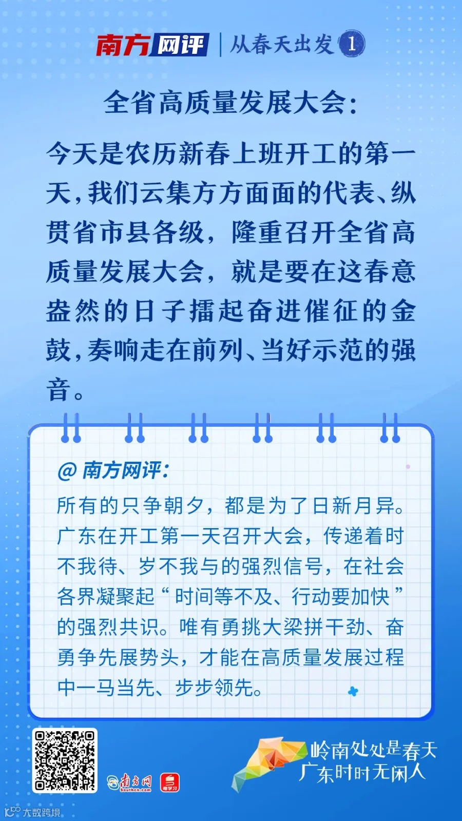 人勤春来早,奋进赶秋实。农历新春开工上班第一天,广东隆重召开全省高质量发展大会,凝心聚力锚定高质量发展首要任务,纲举目张做好全年经济工作。“制造业当家”作为绝对C位,被高频提及,寄予厚望,设分会场热烈讨论。