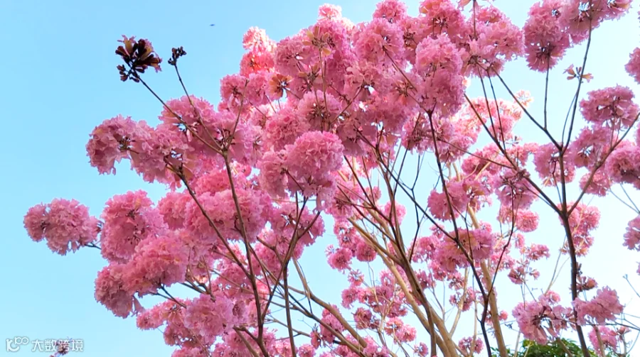 一朵朵风铃木花如风铃般在风中摇曳