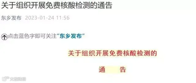 1月24日,江西抚州“东乡发布”微信公众号发布了一条“组织开展免费核酸检测”的通告。通告称,1月25、26日(正月初四、初五),江西抚州市东乡区将在全区范围内开展单人单管免费核酸检测,公告还介绍了具体的核酸检测点和核酸采集注意事项。下午17时许,“东乡发布”微信公众号删除了关于开展免费核酸检测的信息。