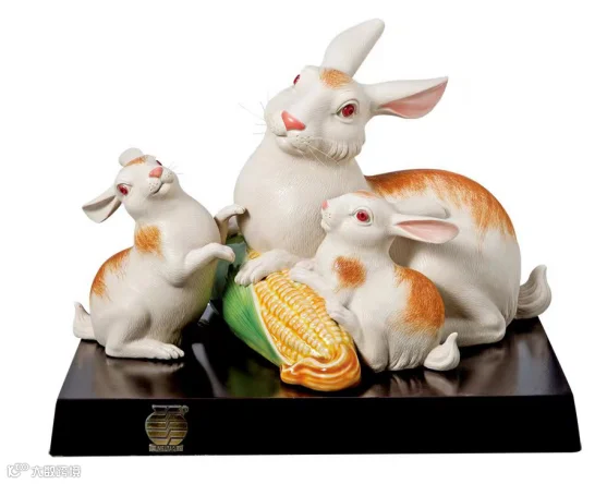在中国,兔子一直被公认为瑞兽。古书《瑞应图》记载:“赤兔大瑞,白兔中瑞。”兔,性格温驯,体态轻盈,在十二生肖中排名第四,对应地支中的卯,是代表和平的动物,是吉祥和顺,长生不老的化身。