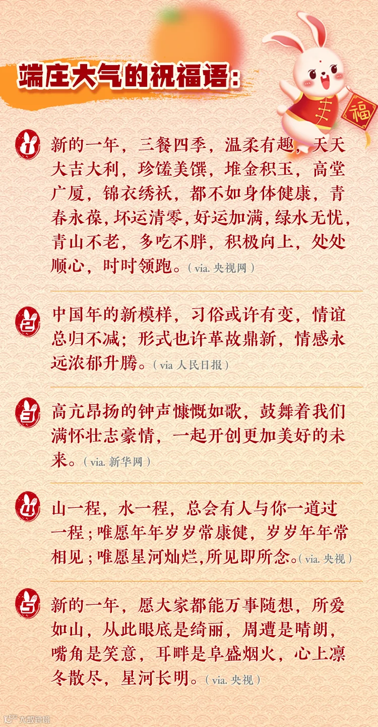 每年春节少不了端庄大气的祝福语