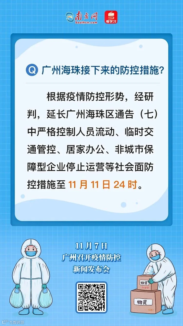 广州海珠延长社会面疫情防控措施至11月11日24时