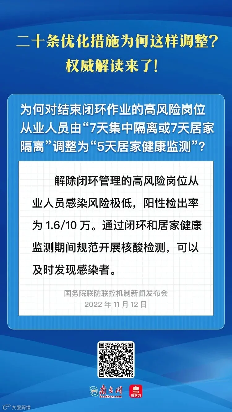 11月11日,国务院联防联控机制发布了《关于进一步优化新冠肺炎疫情防控措施 科学精准做好防控工作的通知》后,引起了广泛关注。今天(11月12日)国务院联防联控机制新闻发布会上,国家疾控局副局长常继乐根据大家特别关注的几条进行了解读。